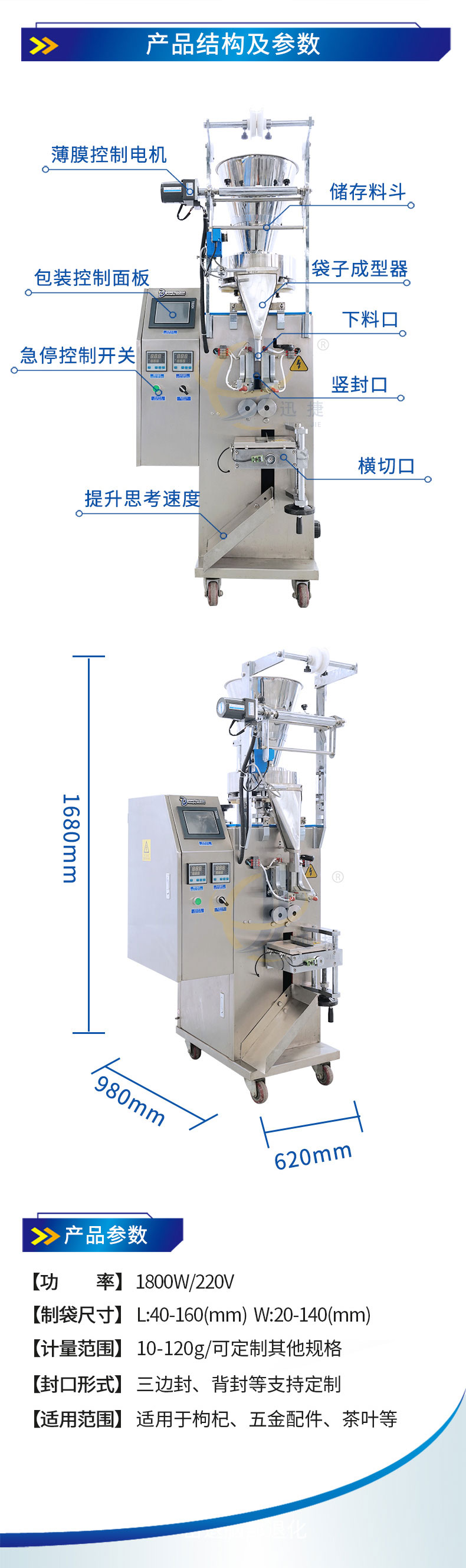 全自動(dòng)立式顆粒包裝機(jī)適用適合食品、化工產(chǎn)品中的圓狀和球狀物料的自動(dòng)包裝主。枸杞、五金配件、茶葉等包裝。