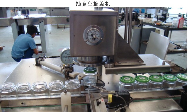XJ-1型數控馬口鐵爪式真空旋蓋機是在技術上采用了真空室的完全密封結構,在真空室中先抽瓶子內真空在配蓋旋蓋。并且利用目前成熟的電氣控制技術和高性能的氣動元件實現編程控制從而實現直筒式全密封真空室的旋轉驅動。真空旋蓋機的包裝容器內能保持真空同時具有剛性,不易癟。蓋子內用密封膠將瓶子旋合,瓶內的真空可以長時間保存。真空室處于筒狀空間幾乎不存在間隙并無泄漏,他的抽真空效率是高、能耗低。